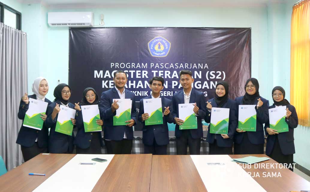Polinela, Jum’at (01/11/2024). Politeknik Negeri Lampung (Polinela) melaksanakan penandatanganan surat perjanjian beasiswa bebas Uang Kuliah Tunggal (UKT) bagi mahasiswa Program Studi S2 Ketahanan Pangan untuk tahun akademik 2024/2025. Penandatanganan dilakukan oleh Wakil Direktur III Bidang Kemahasiswaan, Agung Adi Candra, S.Kh., M.Si., Ketua Pengelola Pascasarjana Ketahanan Pangan, Dr. Irmayani Noer, S.P., M.Si., serta para mahasiswa sebagai bentuk kesepakatan resmi antara Polinela dengan mahasiswa penerima beasiswa.