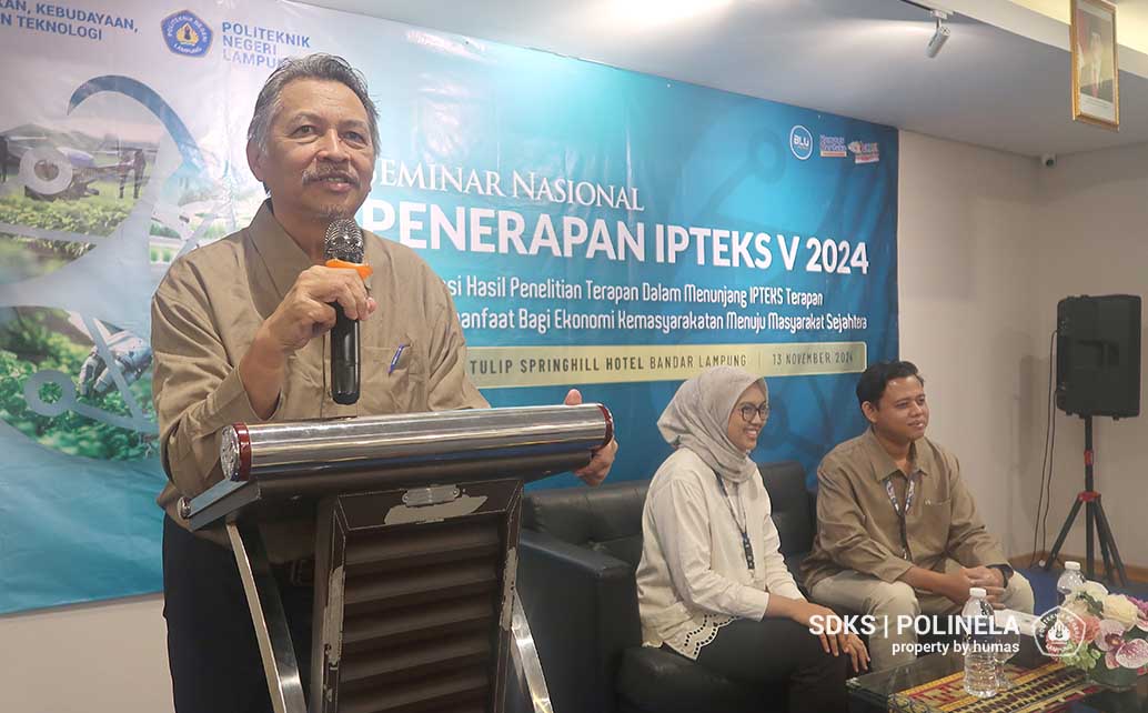 Polinela, Jum’at (15/11/2024). Politeknik Negeri Lampung (Polinela) menyelenggarakan “Seminar Nasional Penerapan IPTEKS V” yang mengusung tema “Diseminasi Hasil Penelitian Terapan Dalam Menunjang IPTEKS Terapan yang bermanfaat bagi ekonomi kemasyarakatan menuju masyarakat sejahtera”. Dihadiri oleh akademisi, peneliti, praktisi, serta mahasiswa dari berbagai institusi.