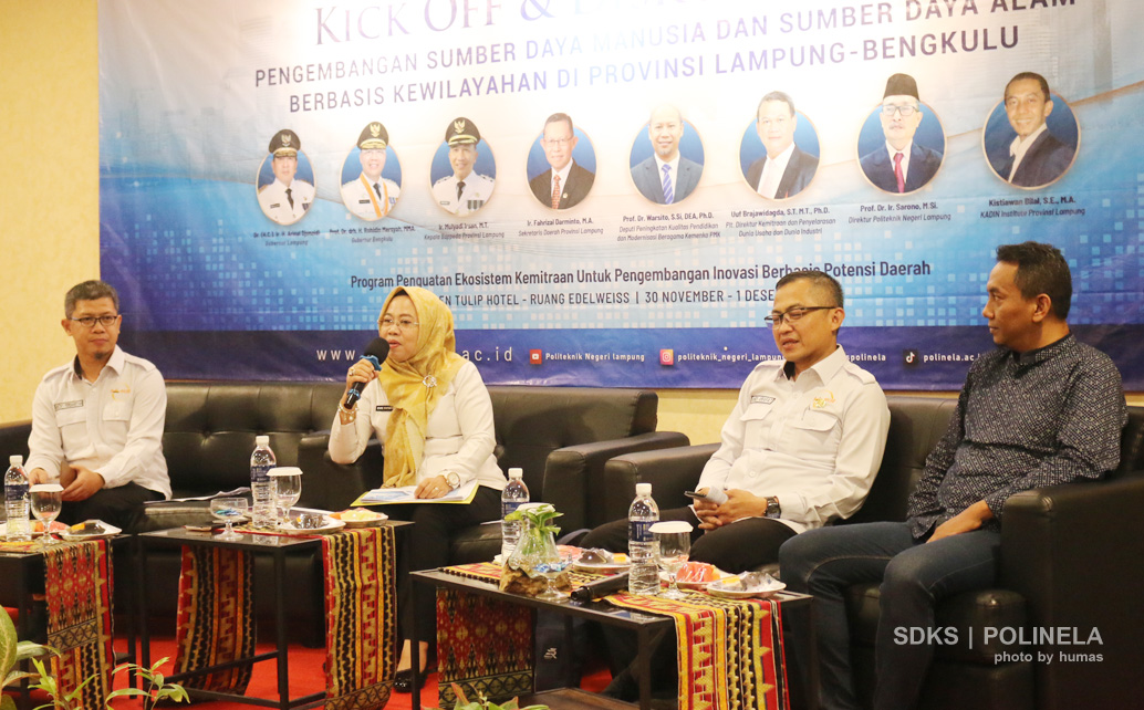 Bandar Lampung (polinela.ac.id), Politeknik Negeri Lampung (Polinela) luncurkan/ Kick Off Program Penguatan Ekosistem Kemitraan dan Inovasi berbasis Wilayah dengan Provinsi Lampung dan Bengkulu. Penguatan ekosistem kemitraan berorientasi untuk inovasi dan pengembangan Sumber Daya Manusia (SDM) dan Sumber Daya Alam (SDA) melalui kemitraan strategis. Kegiatan ini diselenggarakan di Golden Tulip Springhills Bandar Lampung, pada Kamis, 30 November 2023.