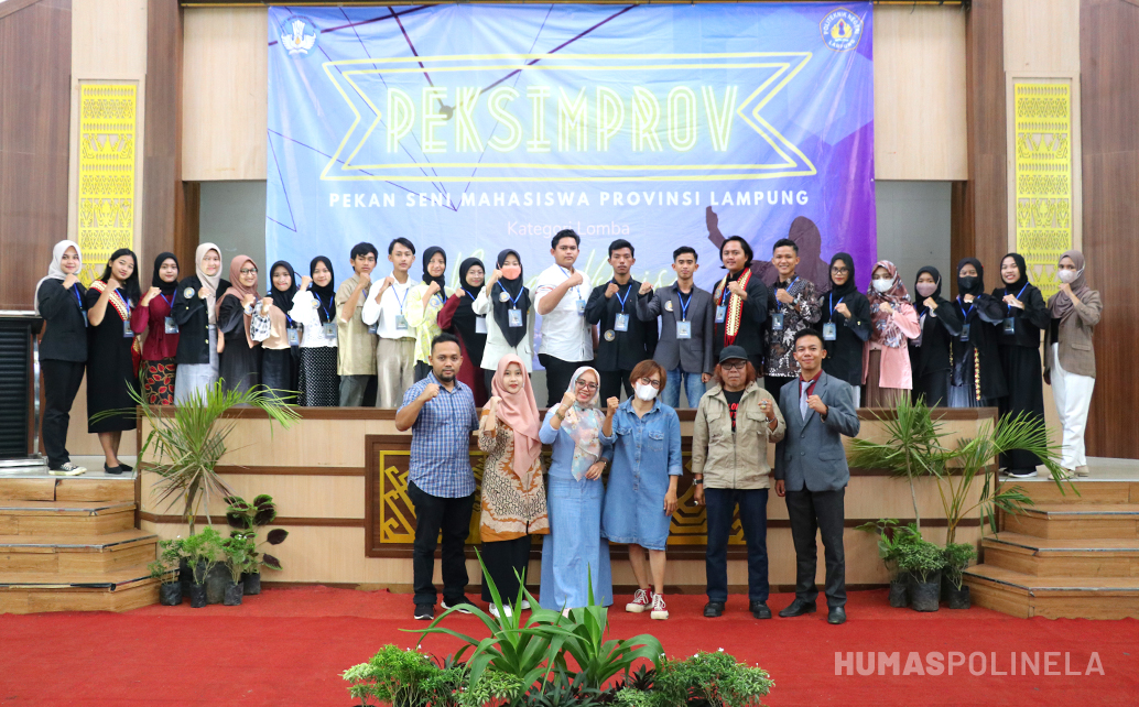 Polinela, Senin (05/09/2022). Politeknik Negeri Lampung (POLINELA) menjadi tuan rumah Pekan Seni Mahasiswa (Peksimprov) 2022 Provinsi Lampung, cabang baca puisi yang dilaksanakan di Gedung Serba Guna Polinela pada hari Sabtu, 3 September 2022. Peksimprov merupakan kegiatan yang bertujuan memberikan wadah bagi mahasiswa dalam meningkatkan kualitas dan kemampuan praktis mahasiswa dalam bidang seni, baik seni suara, seni pertunjukan, seni sastra, maupun seni rupa. Dengan adanya kegiatan ini, diharapkan para mahasiswa mampu meningkatkan sekaligus mengembangkan prestasi dan kreasi seninya untuk memperkaya budaya bangsa. Dalam kesempatan ini hal yang dinilai oleh tim juri yaitu Penafsiran/Interpretasi 35%, Vokalisasi 35%, dan Ekspresi 30%