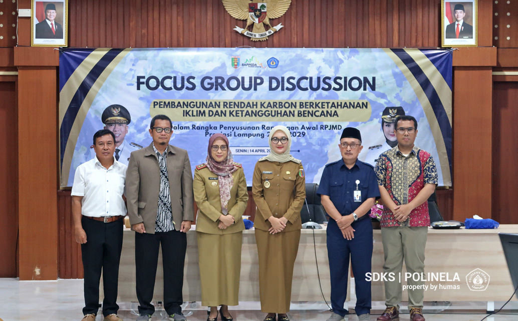 Polinela, Selasa (15/04/2025) Politeknik Negeri Lampung (Polinela) dipercaya menjadi tuan rumah Forum Group Discussion (FGD) bertema “Pembangunan Rendah Karbon, Berketahanan Iklim, dan Ketangguhan Bencana” yang diselenggarakan oleh Bappeda Provinsi Lampung pada 14 April 2025 lalu. Kegiatan ini merupakan bagian dari penyusunan Rancangan Awal RPJMD Provinsi Lampung 2025–2029 dan melibatkan berbagai pemangku kepentingan, termasuk instansi pemerintah, akademisi, organisasi non-pemerintah, serta sektor swasta.