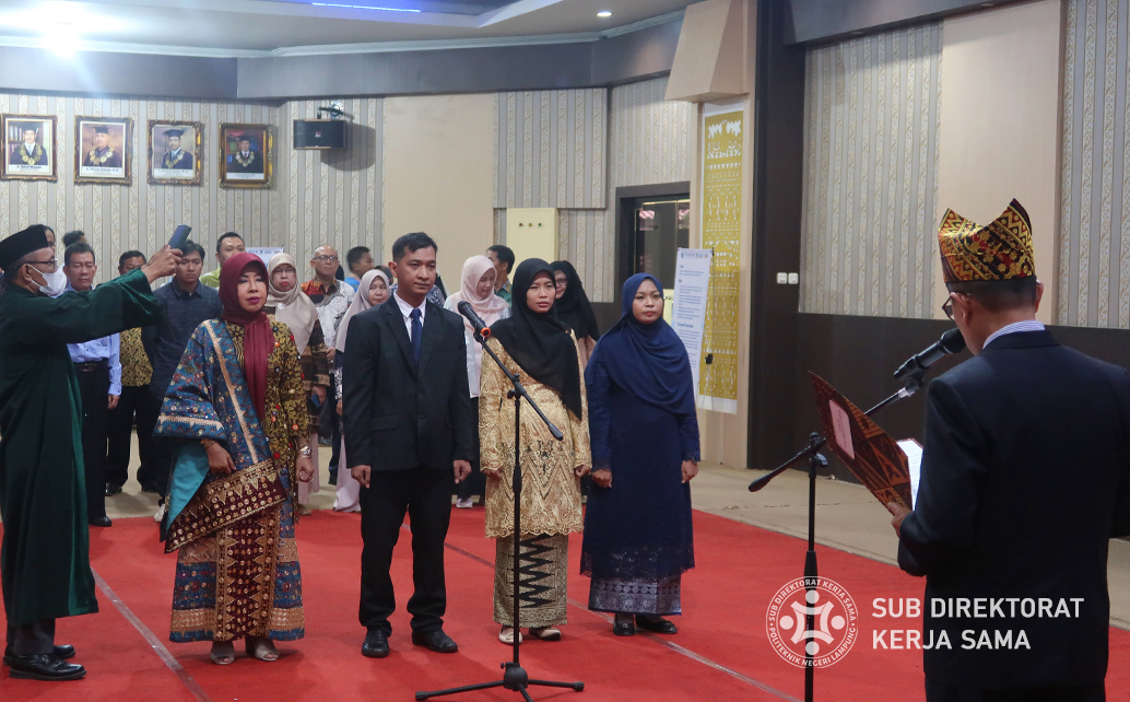 Polinela, Selasa (19/09/2023). Politeknik Negeri Lampung (Polinela) melaksanakan pelantikan sejumlah staf akademik ke dalam jabatan fungsional yang lebih tinggi dalam upaya untuk terus meningkatkan mutu pendidikan dan pelayanan kepada masyarakat. Sebanyak 4 staf akademik Polinela diberikan jabatan fungsional, yaitu Pranata Keuangan Anggaran Pendapatan dan Belanja Negara dan 3 orang Pranata Laboraturium Pendidikan. Acara digelar di ruang sidang utama Polinela.