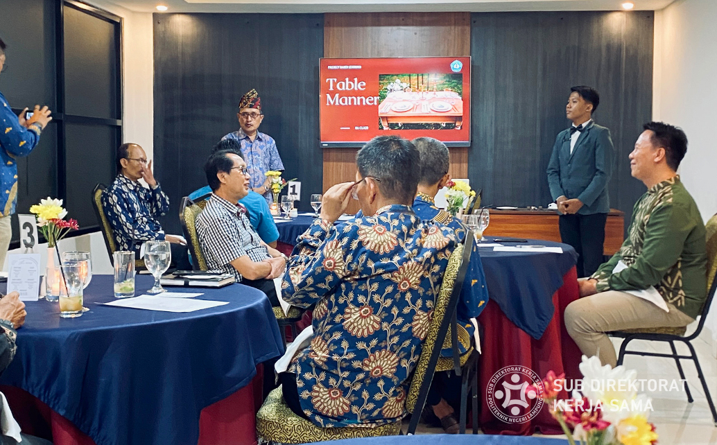 “Proyek Table Manner ini memiliki peran yang signifikan dalam membentuk keterampilan sosial dan profesional para mahasiswa. Saya yakin bahwa setiap peserta telah melakukan persiapan dengan sungguh-sungguh, dan saat ini adalah kesempatan untuk menunjukkan potensi dan kemampuan terbaik.” Ucapnya.
