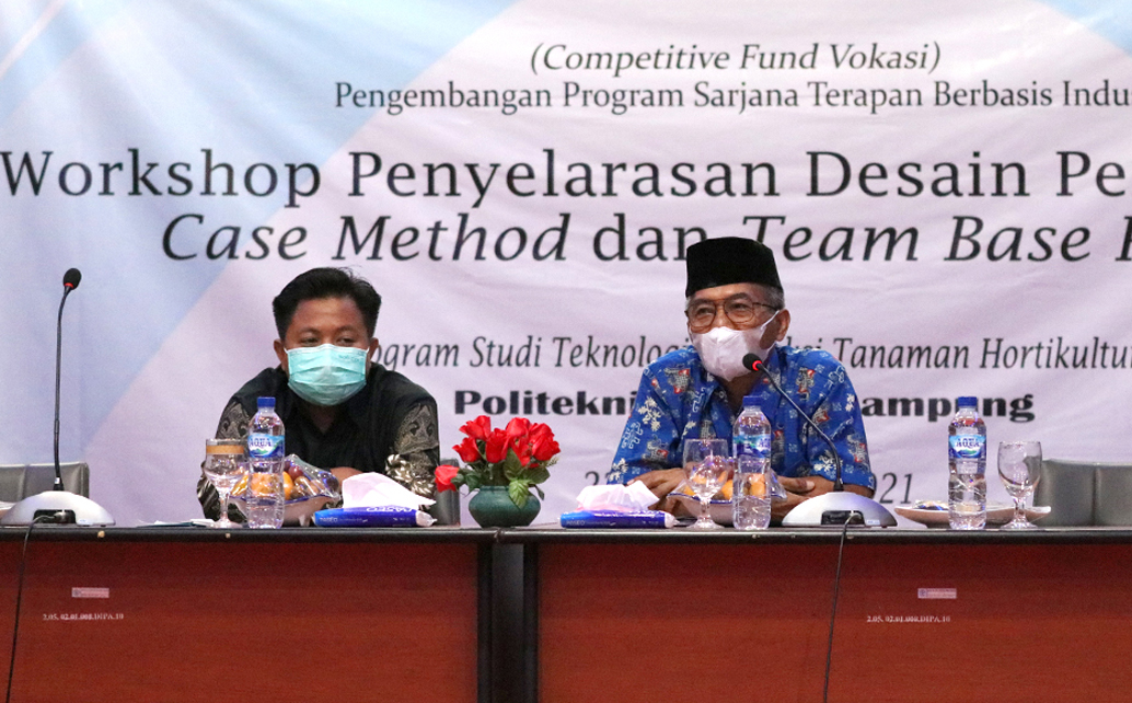 Polinela, Kamis (28/10/2021). Program Studi Teknologi Produksi Tanaman Hortikultura (TPTH) Politeknik Negeri Lampung (Polinela) mengadakan Workshop Penyelarasan Desain Pembelajaran Case Method dan Team Base Project secara daring via Zoom Meeting dan luring bertempat di Ruang Sidang Utama Polinela dengan tetap menerapkan protokol Covid-19. Kegiatan dihadiri oleh Ir. Hery Sutrisno, M.P. selaku Ketua Jurusan, Dosen, dan PLP dari Jurusan Budidaya Tanaman Pangan.