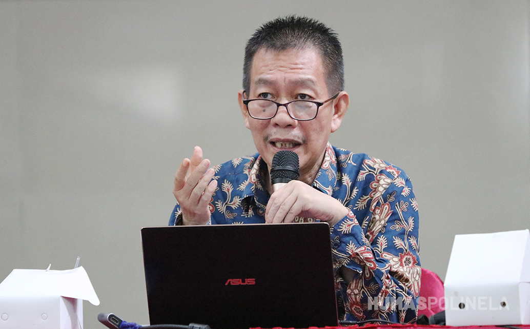 Wakil Direktur II Dr. Ir. Beni Hidayat, M.Si membahas mengenai Organisasi dan Tata Kerja, Statuta dan Analisis Jabatan (Anjab) yang ada di lingkungan Polinela serta penjelasan mengenai webometrics website Polinela.
