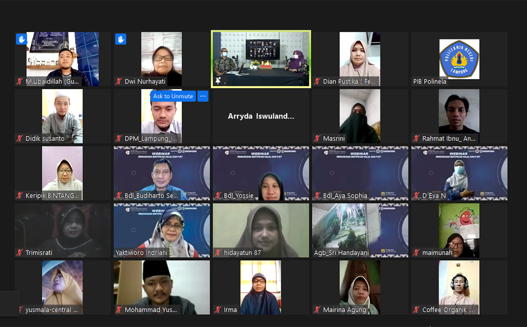Sebanyak 68 UMKM Se-Provinsi Lampung Mengikuti Webinar Pengurusan Sertifikasi Halal dan Perizinan P-IRT yang diselenggarakan oleh PIB Polinela dan Kantor Perwakilan BI Probinsi Lampung