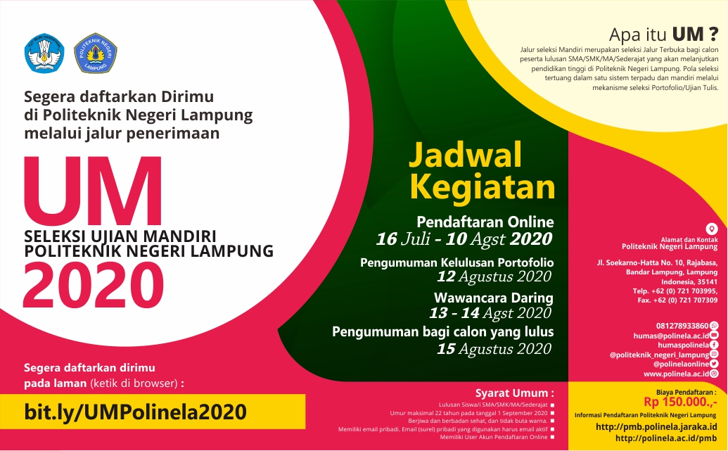 Seleksi Penerimaan Mahasiswa Baru Jalur Mandiri (UM) Politeknik Negeri Lampung T.A. 2020/2021