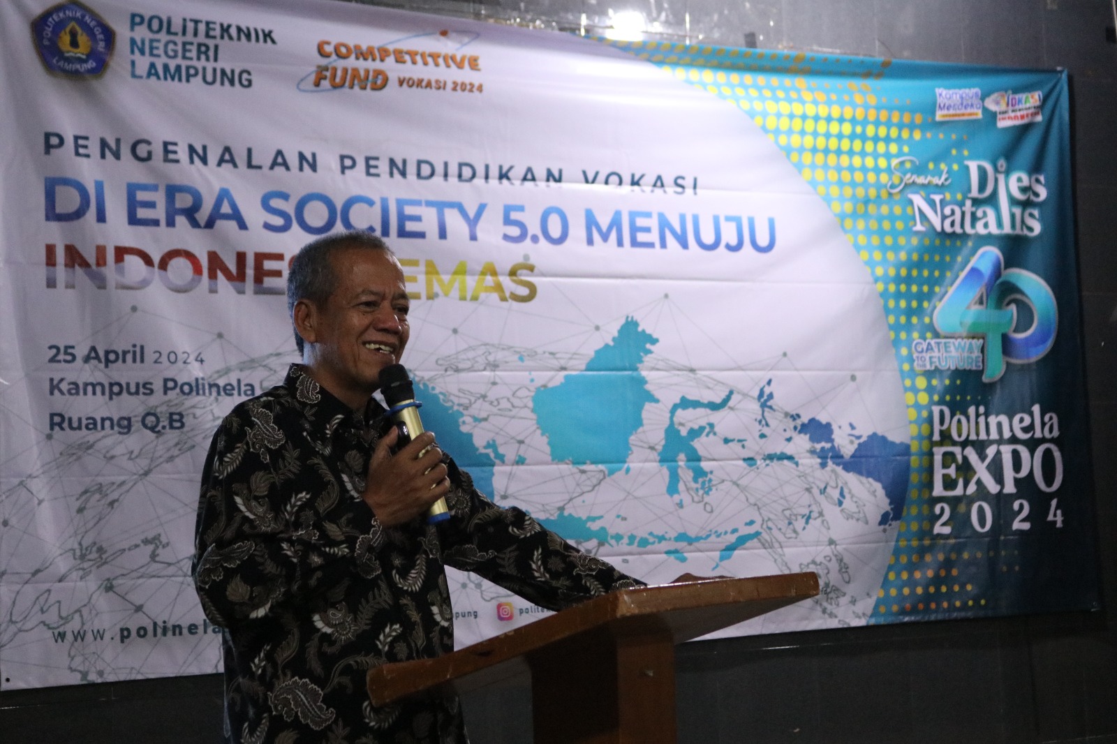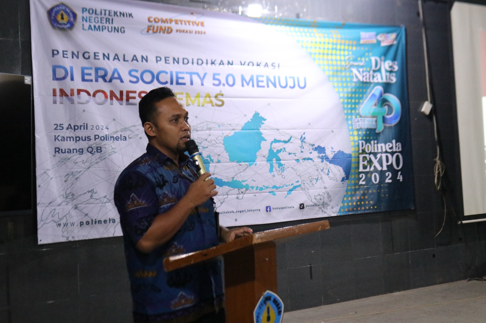 Polinela, Kamis (25/04/2024). Dalam rangkaian Polinela EXPO 2024, kegiatan terkait yang patut diperhatikan adalah Seminar dengan tema “Pengenalan Pendidikan Tinggi Vokasi Dalam Menghadapi Era Society 5.0 Menuju Indonesia Emas 2045” yang diadakan untuk menyemarakkan Dies Natalis ke-40 Polinela. Kegiatan ini berlangsung di Gedung QB1 Polinela.