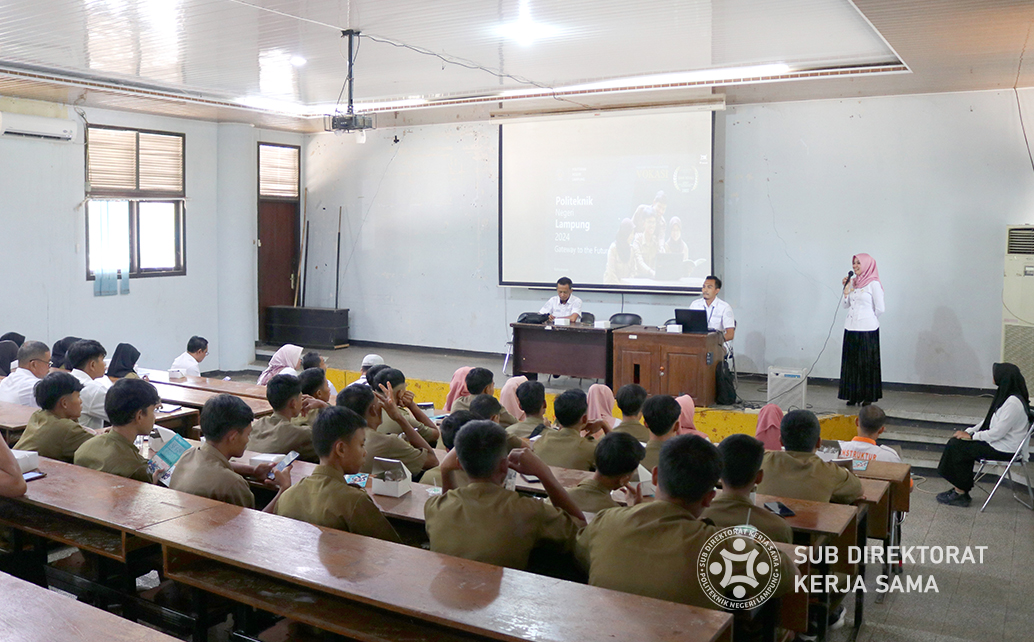 Polinela, Rabu (07/02/2024). Politeknik Negeri Lampung (Polinela) menerima kunjungan industri dari SMK Negeri 1 Way Bungur, Lampung Timur. Kegiatan ini merupakan bagian dari program pengembangan kerja sama antara institusi pendidikan vokasional.
