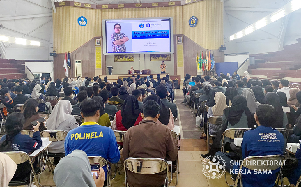 Polinela, Senin (02/12/2024). Politeknik Negeri Lampung menggelar kegiatan Sosialisasi Program Kreativitas Mahasiswa (PKM) bertempat di Gedung Serba Guna Politeknik Negeri Lampung. Acara ini dihadiri oleh lebih dari 300 mahasiswa dari berbagai program studi yang penuh semangat untuk mengeksplorasi potensi mereka di bidang kreativitas dan inovasi.