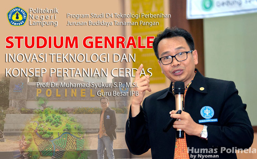 Polinela – Politeknik Negeri Lampung, 2 November 2019, Program Studi Teknologi Perbenihan /D4 Polinela, melaksanakan Kuliah Umum / Studium Generale yang mengambil tema :”INOVASI TEKNOLOGI DAN PENERAPAN KONSEP PERTANIAN CERDAS“.