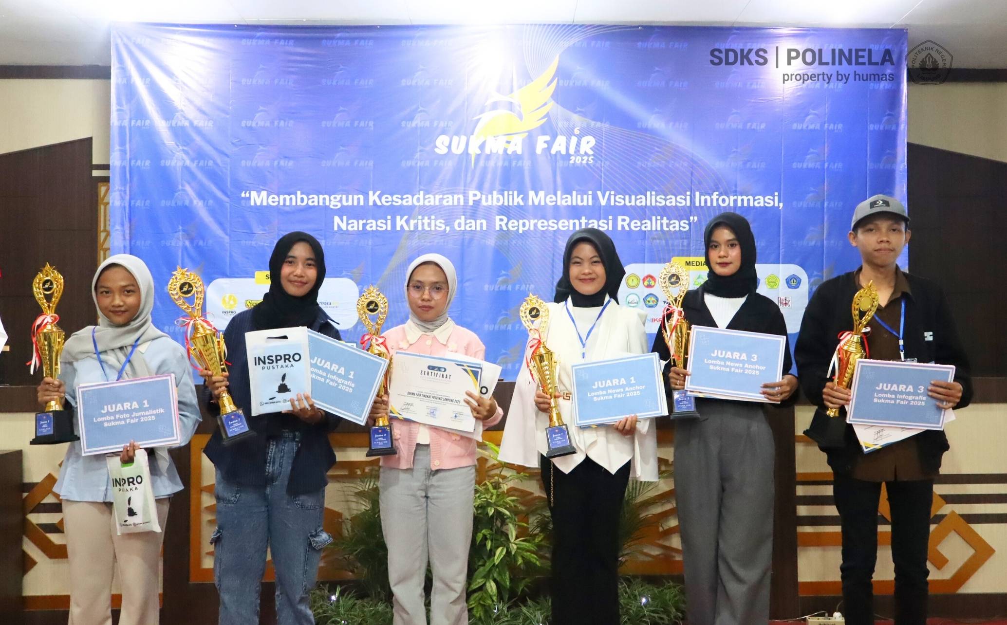 Penyerahan penghargaan kepada para juara menjadi momen yang ditunggu-tunggu, sebelum acara resmi ditutup dengan foto bersama pemenang, panitia, dan seluruh peserta. Melalui kegiatan ini, UKM Pers Sukma Polinela berharap para peserta tidak hanya mendapatkan pengalaman berkompetisi, tetapi juga mampu memperkuat kesadaran publik dalam menyampaikan informasi melalui narasi kritis, visualisasi, serta representasi yang mendekati realitas.