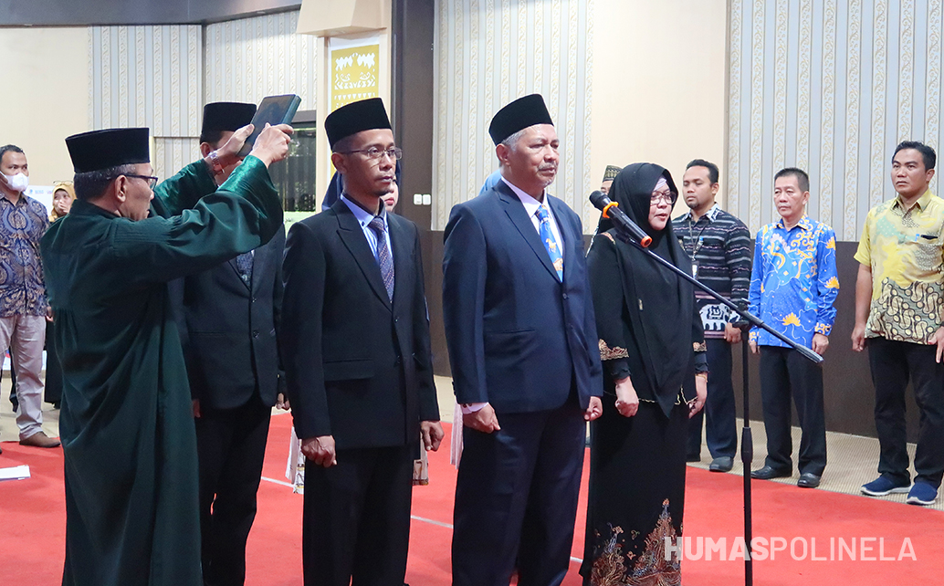 Polinela, Kamis (02/03/2023). Direktur Politeknik Negeri Lampung (Polinela) Dr. Ir. Sarono, M.Si. melantik dan mengambil sumpah jabatan Wakil Direktur Bidang Kerjasama periode 2023-2027, Kepala Pusat Penjaminan Mutu dan
