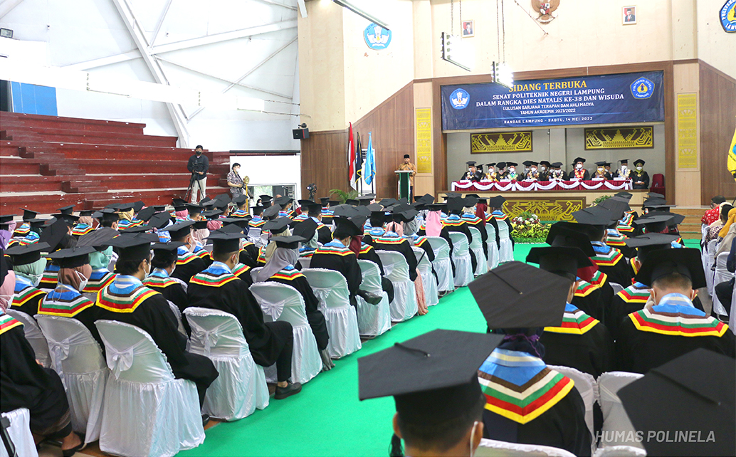 Polinela, Senin (17/05/2022). Rapat Terbuka Senat merupakan rangkaian kegiatan Dies Natalis ke-38 Politeknik Negeri Lampung yang jatuh pada tanggal 7 april 2022, acara tersebut seyogyanya dilaksanakan pada tanggal tersebut, namun dikarenakan jatuh pada bulan Suci Ramadhan 1443 H., maka Rapat Senat terbuka dilangsungkan pada tanggal 14 mei 2022. Sidang Terbuka Senat