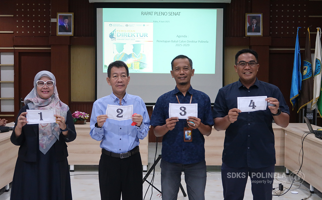 Polinela, Kamis (05/06/2025). Panitia Pemilihan Direktur Politeknik Negeri Lampung (Polinela) menggelar tahapan penting dalam proses pemilihan direktur periode 2025–2029, yakni Penetapan Nomor Urut Bakal Calon Direktur, yang dilangsungkan di Ruang Sidang Utama Polinela.