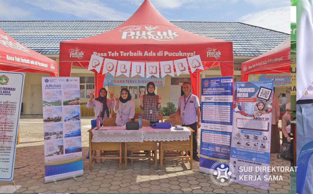 Polinela, Selasa (07/01/2025). Tim Penerimaan Mahasiswa Baru (PMB) Politeknik Negeri Lampung (Polinela) turut serta dalam kegiatan campus expo bertema “Make Your Choice To Get Your Dream” yang diselenggarakan di SMA Negeri 1 GedongTataan pada 7 Januari 2025. Kegiatan ini menjadi bagian dari upaya Polinela dalam memperkenalkan program pendidikan kepada calon mahasiswa baru tahun akademik 2025/2026.