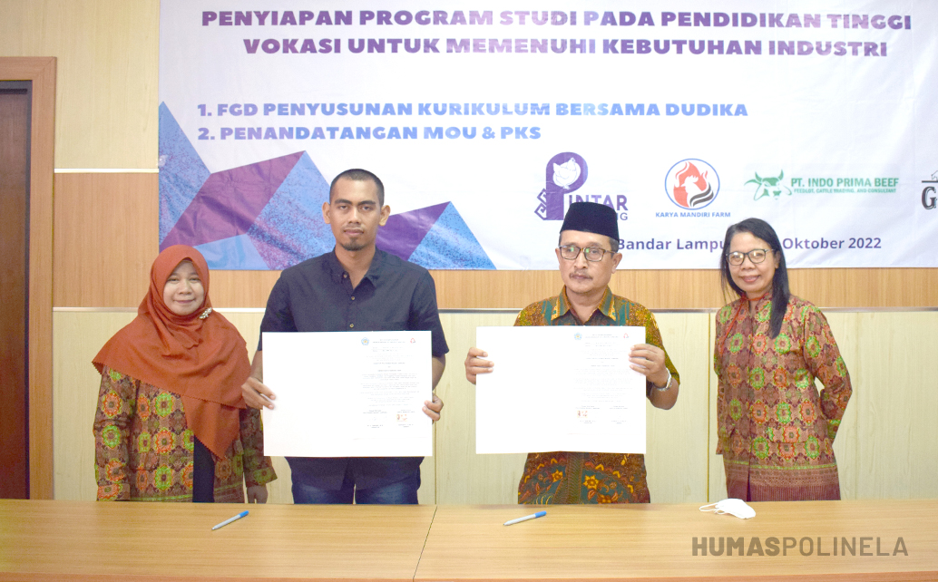 Penandatangan MoU dilaksanakan oleh Direktur Polinela, Dr. Sarono, M.Si., dan Owner Karya Mandiri Farm, Suprapto, A.Md.Pt. Karya Mandiri Farm,  merupakan perusahaan yang bergerak di bidang usaha/bisnis peternakan ayam broiler. Ruang lingkup perjanjian kerjasama ini meliputi:  penyusunan kurikulum,  dosen industri/praktisi mengajar, magang/PKL, dan penyerapan alumni.