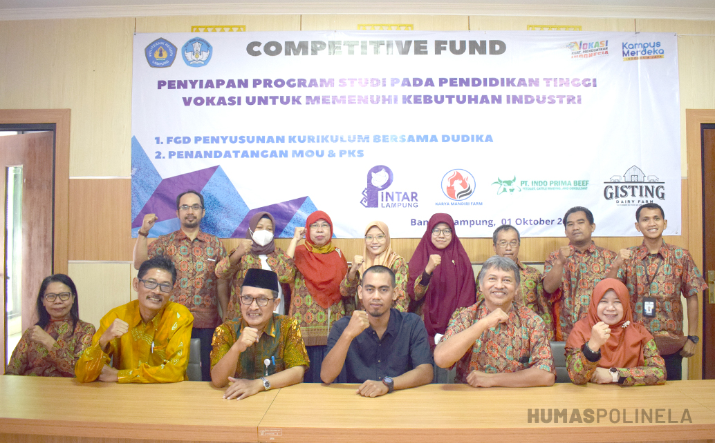 POLINELA, Selasa (04/10/2022). Program Studi Produksi Ternak, Politeknik Negeri Lampung, gelar Focus Group Discussion (FGD) dan MoU pada  Sabtu, 1 Oktober 2022 di Ruang Sidang A Polinela. FGD dan MoU dengan perusahaan peternakan tersebut, diselenggarakan sebagai upaya penyelarasan kurikulum, dalam rangka transformasi, program D3 menjadi D4/S1