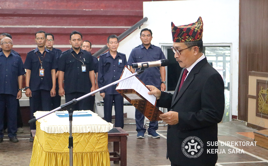 Polinela, Senin (09/10/2023) Politeknik Negeri Lampung menggelar acara pengambilan sumpah jabatan pegawai negeri sipil (PNS) dan pegawai pemerintah dengan perjanjian kerja (PPPK) yang berlangsung di gedung serba guna Polinela. acara tersebut menandai langkah monumental dalam memperkuat keberlanjutan pendidikan tinggi di lampung serta memperkuat kualitas sumber daya manusia di Polinela dengan jumlah PNS 104 orang dan PPPK 15 orang.