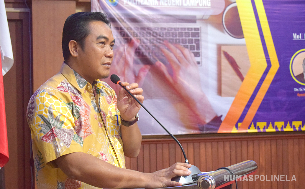 Polinela, Kamis (1/09/2022). UPT. Perpustakaan Politeknik Negeri Lampung melaksanakan Seminar Nasional  dengan tema “Kampus Menulis” bekerjasama dengan Penerbit Buku Pusdila, bertempat di Ruang Sidang Utama Polinela, pada hari Kamis, 1 September 2022. Peserta dalam kegiatan ini adalah Dosen di lingkungan Politeknik Negeri Lampung. Kegiatan bertujuan meningkatkan kemampuan dan kreativitas dalam penulisan karya ilmiah dengan Narasumber Drs. Joseph Edyanto, SE, selaku Direktur KuBuku dan Graha Ilmu.