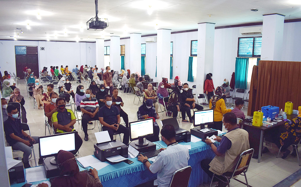 Polinela, Jum’at (30/04/2021). Politeknik Negeri Lampung (Polinela) menyelenggarakan program vaksinasi Covid-19 tahap I bagi 472 Tenaga Pendidik dan Kependidikan di Gedung S Polinela.