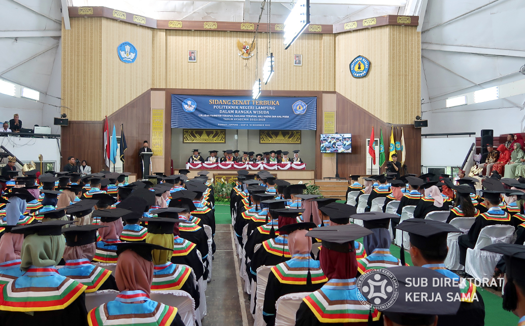 Polinela, Senin (18/12/2023). Politeknik Negeri Lampung (Polinela) Menyelenggarakan Sidang Terbuka Senat dalam rangka wisuda periode 50, pada Sabtu, 16 Desember 2023. Wisuda dibuka oleh Ketua Senat Ir. Zaenal Mutaqin, M.P. berlangsung di Gedung Serba Guna (GSG).