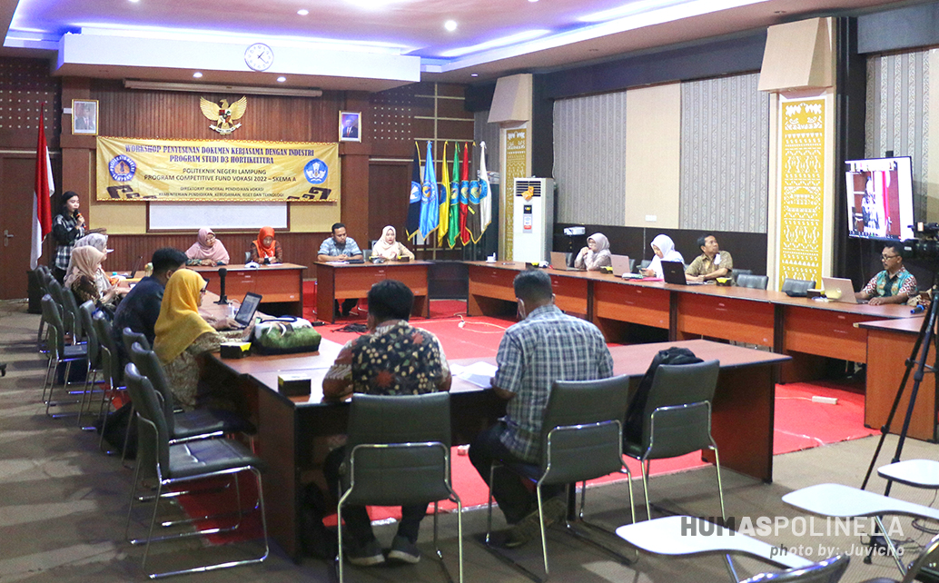 Polinela, Kamis (23/09/2022). Program Studi (Prodi) D3 Hortikultura Jurusan Budidaya Tanaman Pangan Politeknik Negeri Lampung (Polinela) mengadakan Workshop Penyusunan Dokumen Kerjasama dengan Industri. Kegiatan dilaksanakan dari tanggal 22-23 September 2022 di Ruang Sidang Utama Polinela. Pada hari pertama kegiatan diisi dengan penyampaian materi & diskusi oleh narasumber mitra dan dihari kedua diadakan pelaksanaan penyusunan Dokumen Kerjasama dengan Industri. Kegiatan dihadiri oleh Pembantu Direktur III Polinela, Ketua Jurusan Budidaya Tanaman Pangan Polinela, Perwakilan Unit Kerjasama, Ketua Program Studi yang ada di Jurusan Budidaya Tanaman Pangan, dan Dosen Prodi D3 Hortikultura. Kegiatan dipandu oleh Mustika Adzania Lestari, S.P., M.P. selaku dosen Prodi D3 Hortikultura.